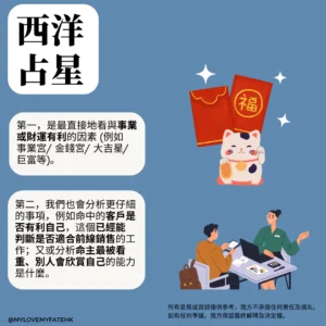 我們除了主要使用中式的子平八字(不是紫微斗數)理論外,同時兼備西洋占星學派的背景輔助,在玄學市場較為少見,診斷命格時更為精準,就像按不同的病情而找中醫或西醫一樣。